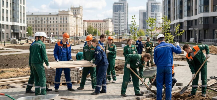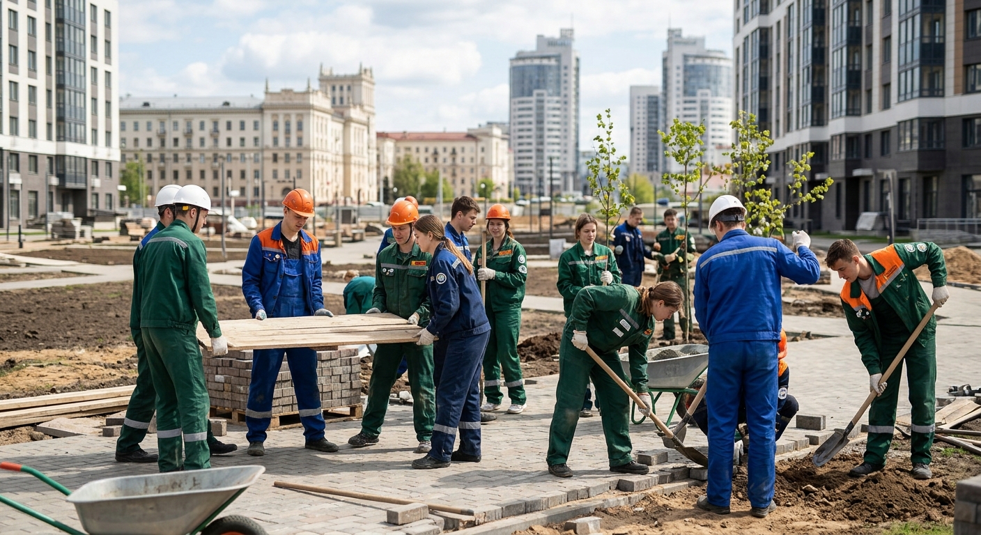 Участники студенческих отрядов задействованы на различных городских объектах. Один из студентов начинает работу на Всебелорусской молодежной стройке, объектом которой является комплекс Национального исторического музея и парка Народного единства. На этой стройке первый отряд завершает свою деятельность, второй приступает к работе, а третий отряд планирует начать через два дня. Общее количество молодых людей, занятых на данном объекте, составит около двадцати человек, восемнадцать из них — несовершеннолетние.